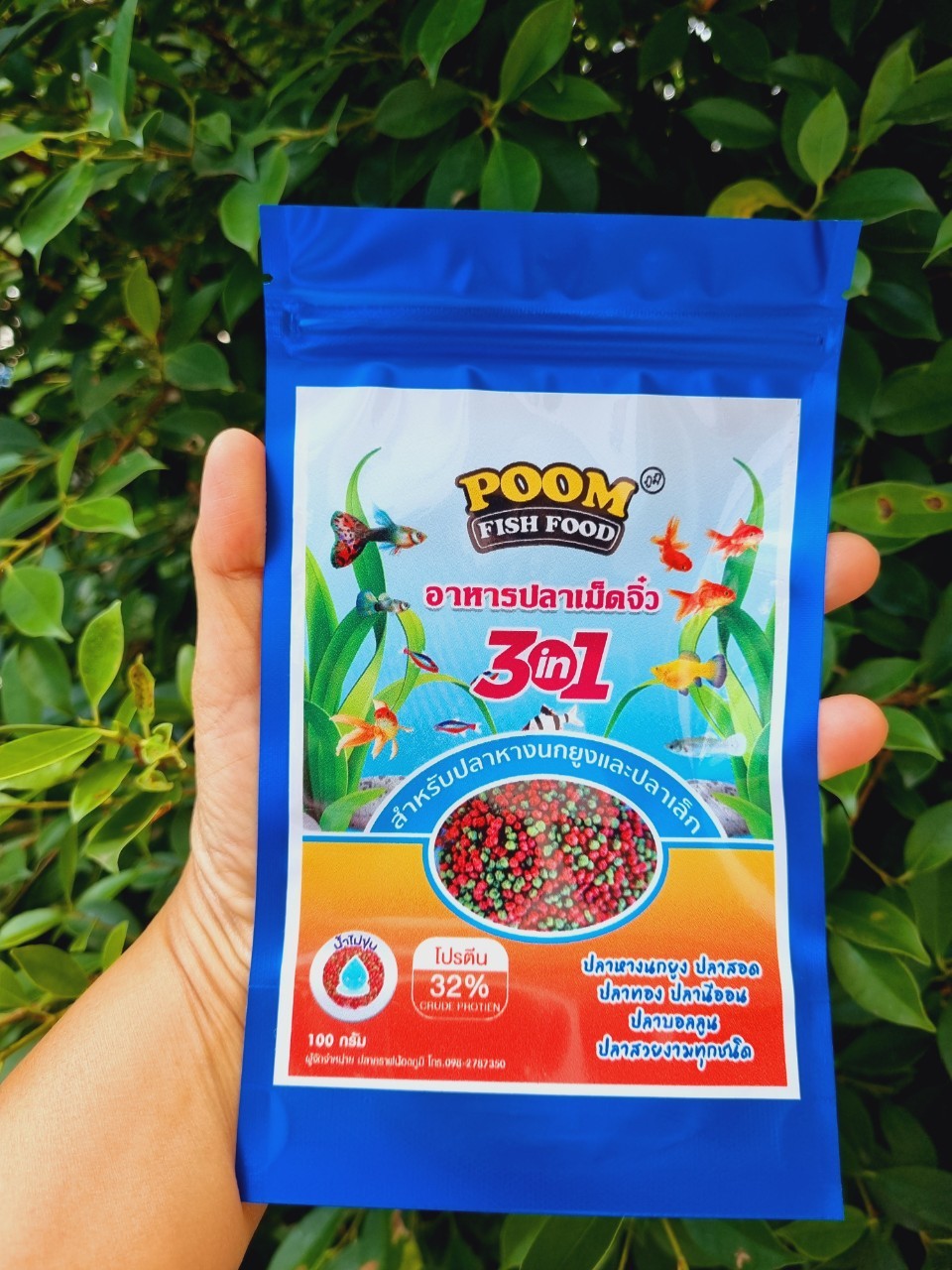 POOM (ภูมิ) "น้ำไม่ขุ่น" อาหารปลาหางนกยูง POOM 100 g. (ถุงซิปล็อค) ขนาดเม็ดจิ๋ว 1.5 มม. เม็ด 2 สี 💢พิเศษ เพิ่มเบต้ากลูแคน & MOS ป้องกันปลาป่วย เสริมภูมิต้านทาน